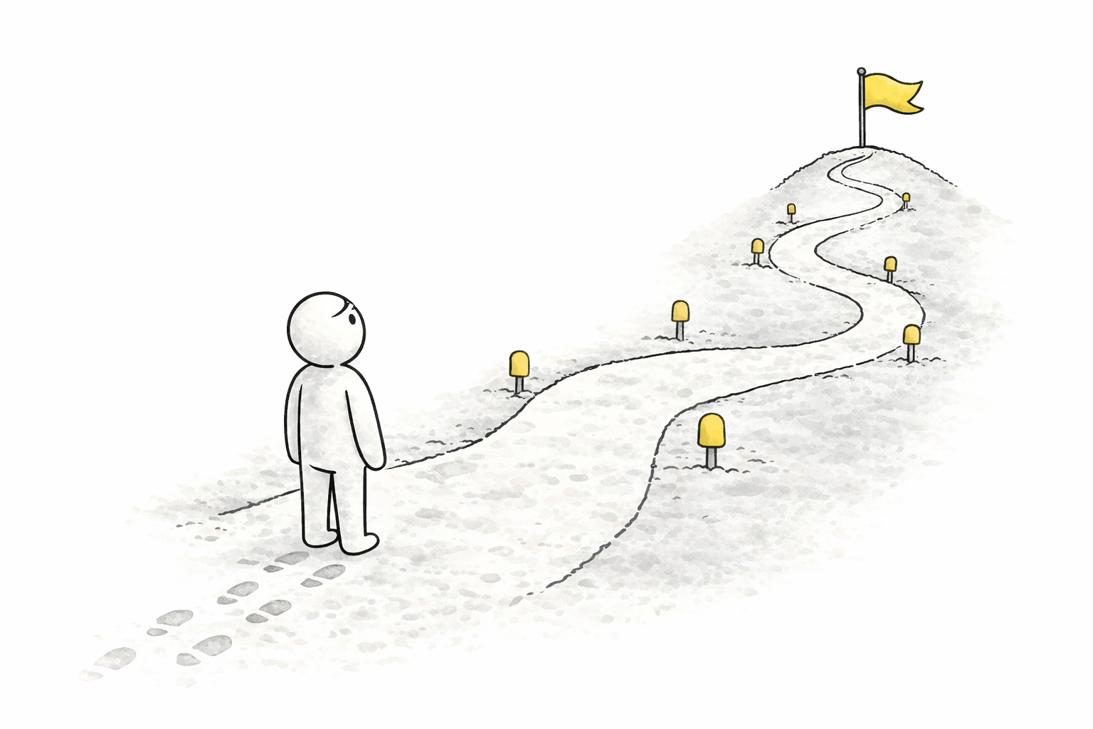 Consider someone trying to change careers. The first weeks are exciting: researching, imagining, making plans. The final weeks are exciting too: interviews, offers, the finish line in sight. But the months in between, the studying, the networking, the applications that go nowhere, that's the dead zone. And that's where most people quit. Not because the goal stopped mattering. Because the middle stopped feeling like progress.